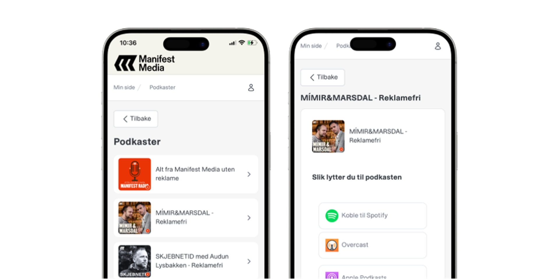 2. Velg hvilke podkaster du ønsker å lytte til. (Vil du ha alle nye episoder fra Manifest Media, kan du velge Manifest Radio.)