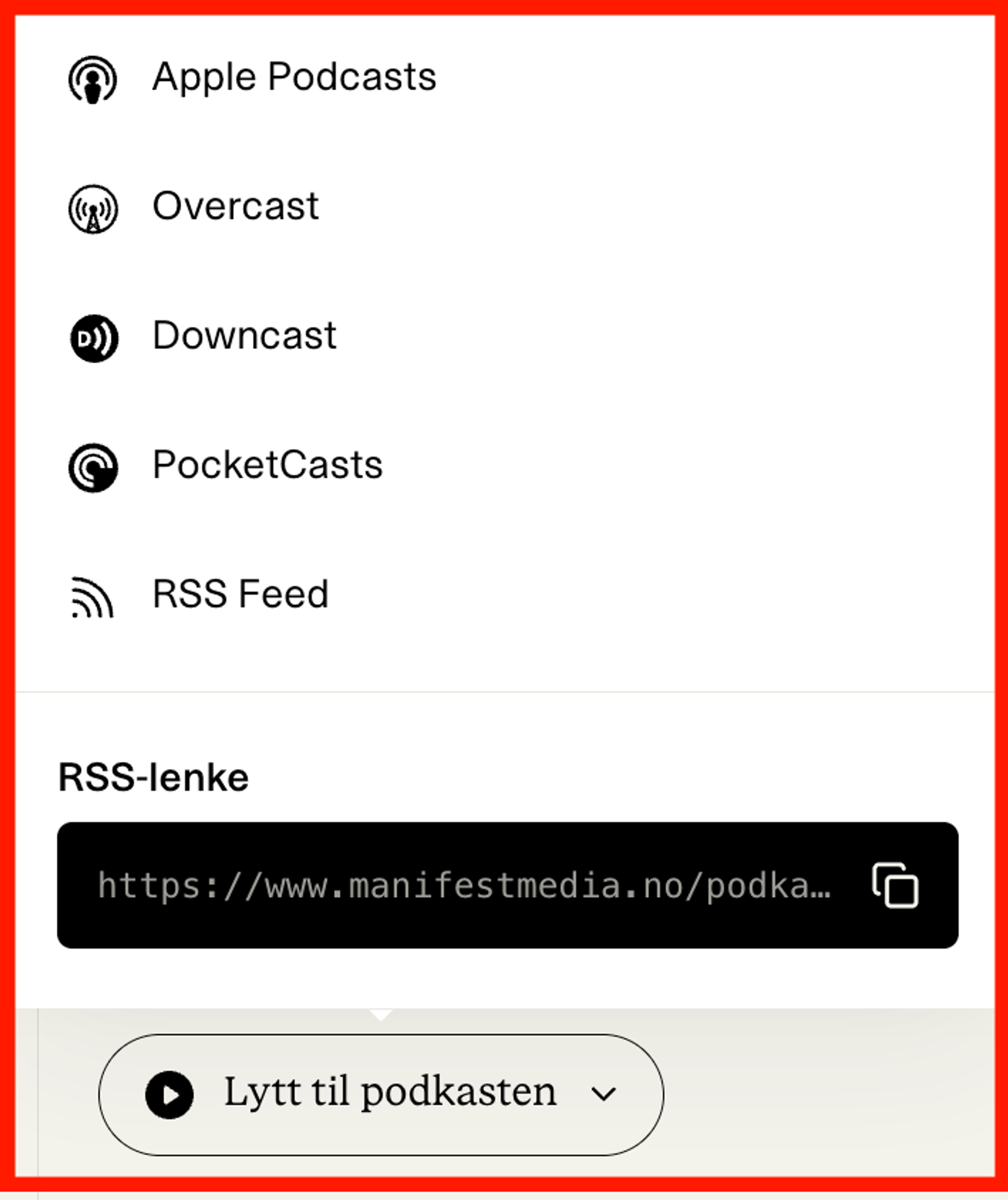 OBS! Dersom du i din avspiller har abonnert på Manifest Medias podkaster før kan det være lurt å slette dem før du legger til den reklamefrie versjonen, så du ikke forveksler dem. Det står "reklamefri" bak navnet på podkasten når du er på den riktige.